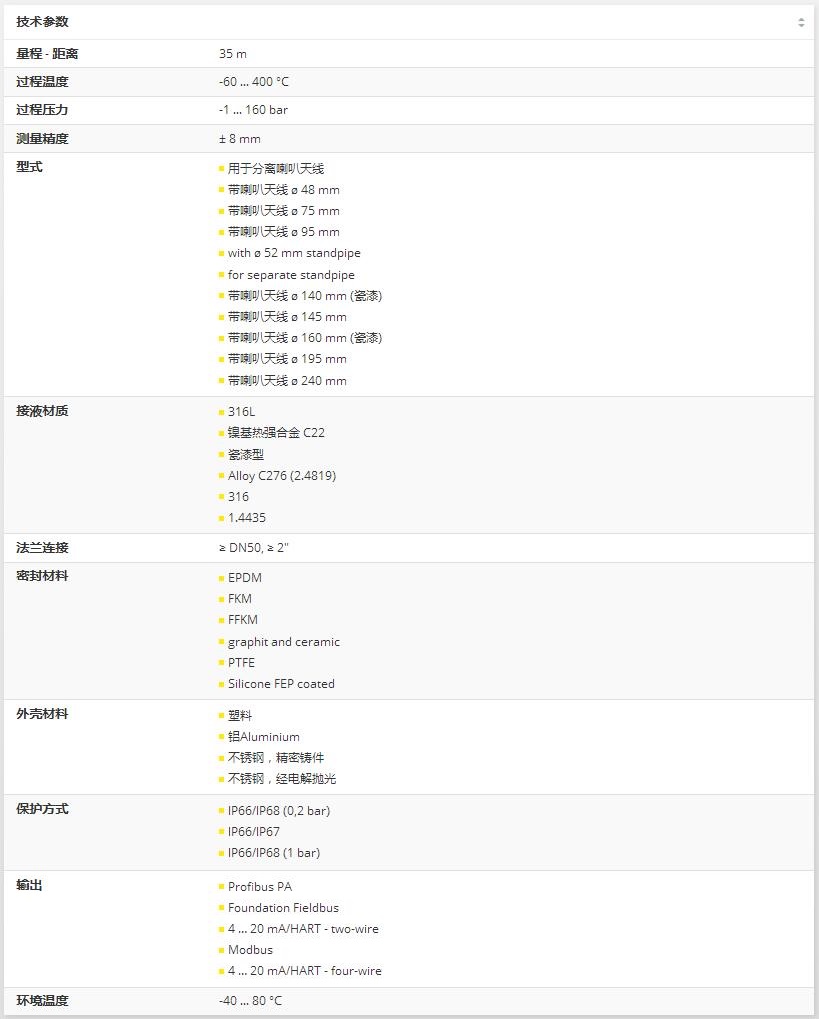 VEGAPULS 66雷達(dá)傳感器用于惡劣過程條件下液體的持續(xù)性物位測量。 適于在儲(chǔ)藏和過程容器以及豎管使用。 VEGAPULS 66雷達(dá)傳感器有不同天線種類,應(yīng)用廣泛。